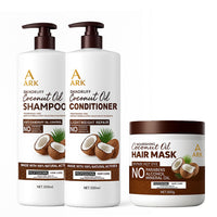 ARK Coconut Oil 3in1 Hair Care Set – Complete nourishing trio with Shampoo, Conditioner & Hair Mask to repair damage, deeply moisturize, and smooth frizz for healthy, shiny hair.